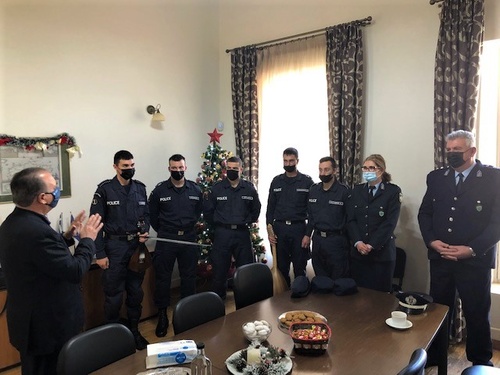 Παραδοσιακά κάλαντα με λύρα και λαούτο έψαλλαν στον Δήμαρχο Ρεθύμνου Δόκιμοι από τη Σχολή Αστυφυλάκων - 21/12/21