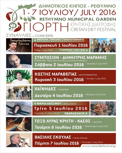 30/06/16, ΔΤ Καλλιτεχνικό Πρόγραμμα 5ης Γιορτή Κρητικής Διατροφής 2016